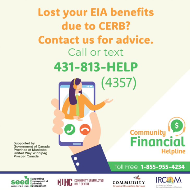 We have partnered with SEED Winnipeg, Community Financial Counselling Services, and Immigrant and Refugee Community Organization to provide information on various income support and benefit entitlement programs.